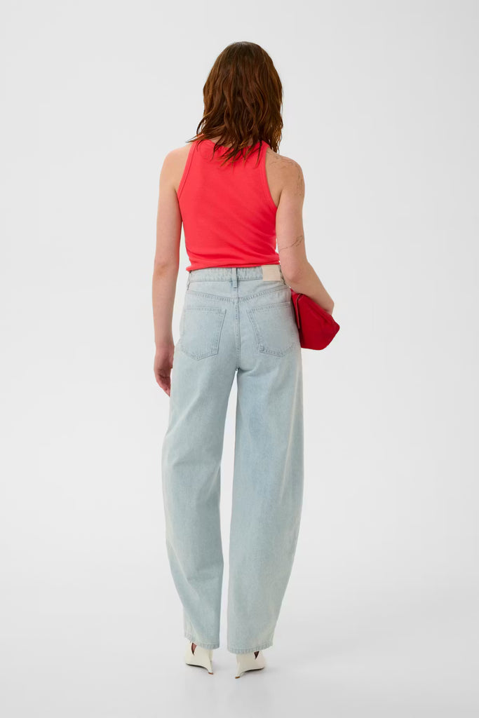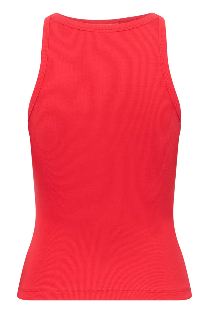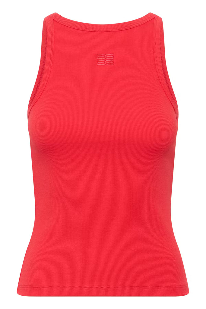 This fitted ribbed tank top features a sleek high neckline and tonal embroidered logo. Streamlined silhouette and minimalist details for a modern look.