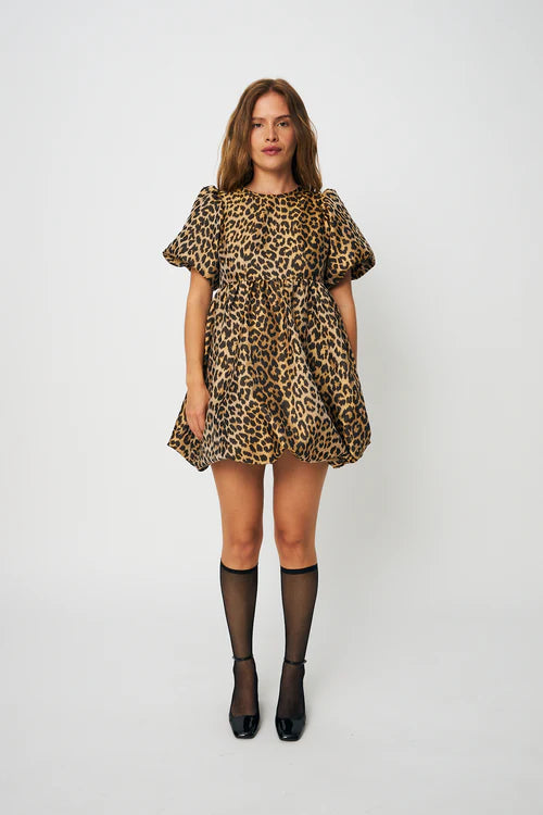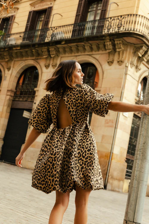 Jamillacras Dress is designed for the woman who loves to stand out with confident elegance. The voluminous silhouette combined with the bold leopard print creates a playful yet sophisticated look. The puffed sleeves and airy skirt add beautiful movement, while the open back brings a surprising and feminine twist. A mini dress that transitions effortlessly from day to night – always with attitude and personality.