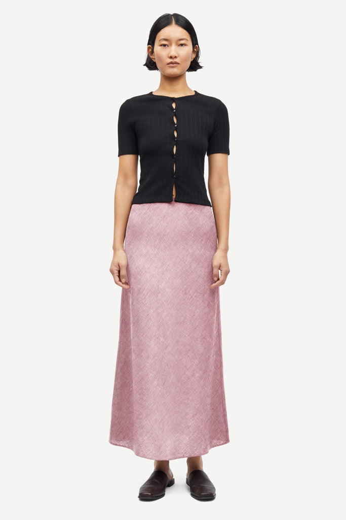 Mid-waist maxi skirt with a slim fit. Invisible zipper and hook closure. Elastic waistband. Main material made from 100% linen.