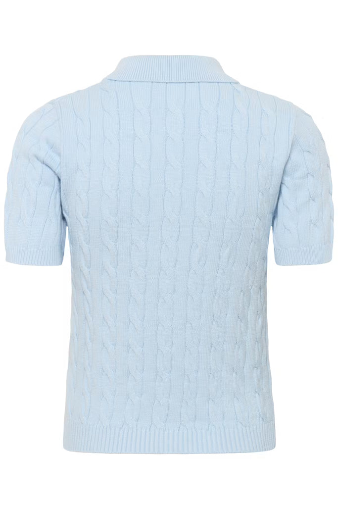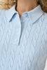 Blue x FrizzanteThis women's polo sweater features a regular fit, short sleeves, a classic button placket, collared neckline, and distinctive cable knit texture for versatile smart-casual comfort and everyday style.